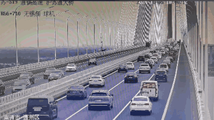 ▲10月5日11时左右,苏通大桥由北往南方向路况